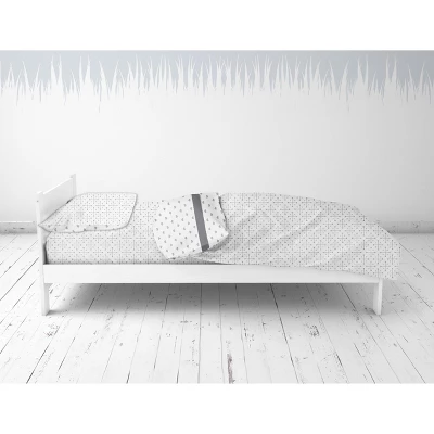 The perfect way for your little one to transition from their crib is into a toddler bed. They share the same size mattress making switching a snap. This toddler bedding set includes one comforter (42 x 57 inches) one fitted sheet, one flat sheet and one standard size pillowcase. Made with 100 percent cotton super soft breathable muslin fabrics in Bacati signataure prints on the reversible comforter, fitted sheet, flat sheet with with elastic on one side to train your child to make his/her own bed, and a standard size pillowcase with french ties on the back. Made in a super soft 100 percent cotton muslin fabric which is sure to comfort your little toddler all year long. The fitted sheet is 28 x 52 inches and has elastic all corners for a safe and snug fit on a standard size crib/toddler mattress. The flat sheet is 42 x 55 inches and the pillowcase is 20 x 25 inches. There are many other cordinating accessories to purchase separately in this Bacati bedding collection.